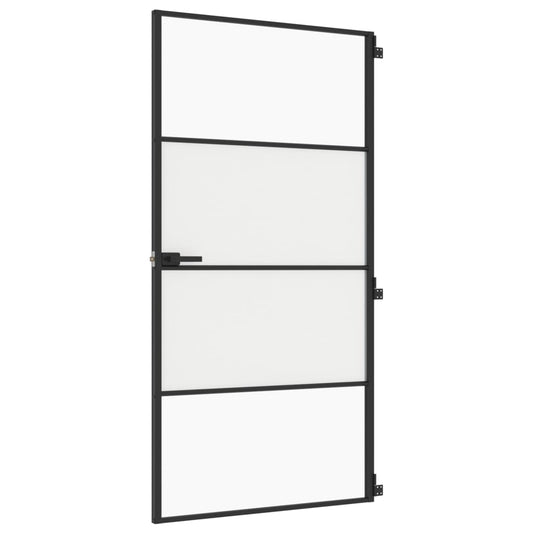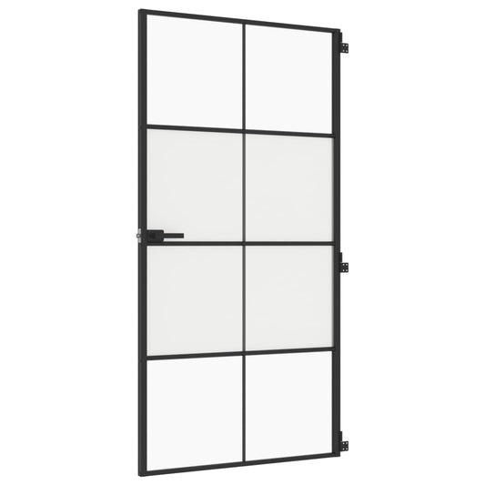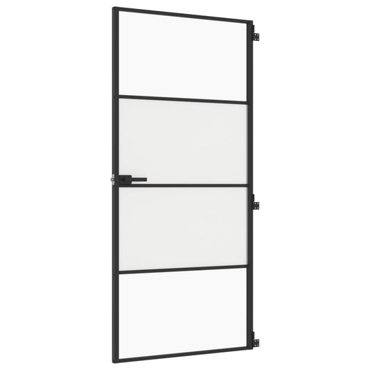 Binnendeur Smal 93X201,5 Cm Gehard Glas En Aluminium Zwart