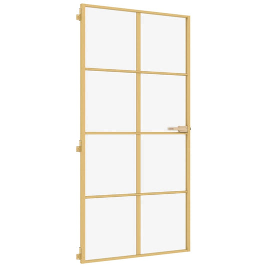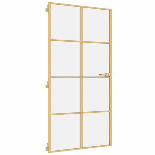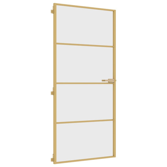 Binnendeur Smal 93X201,5 Cm Gehard Glas En Aluminium Goudkleur