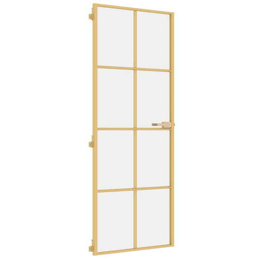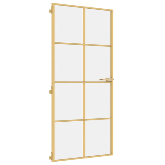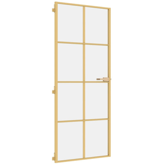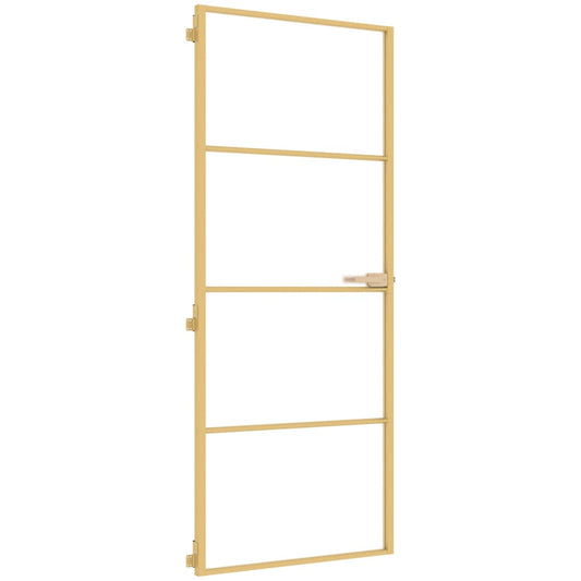Binnendeur Smal 83X201,5 Cm Gehard Glas En Aluminium Goudkleur