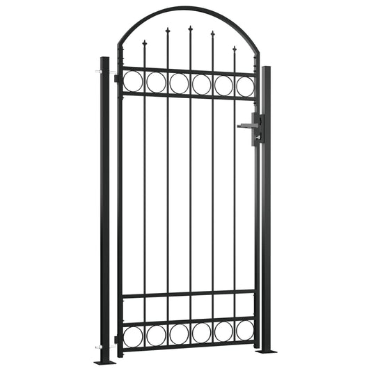Poort Met Gebogen Bovenkant En 2 Palen 105X204 Cm Zwart