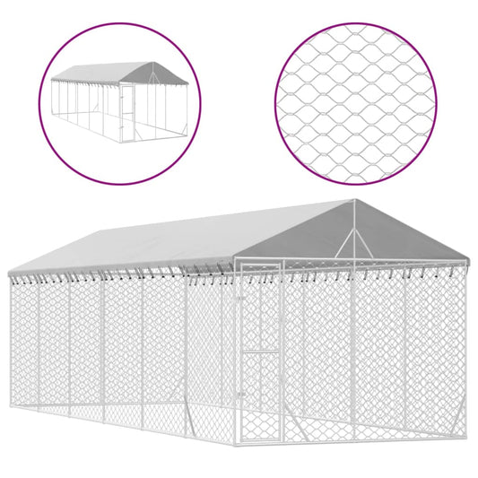 Hondenkennel Met Dak 10X8X2,5 M Gegalvaniseerd Staal Zilver