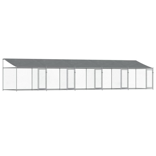 Hondenhok Met Dak En Deuren Gegalvaniseerd Staal Grijs